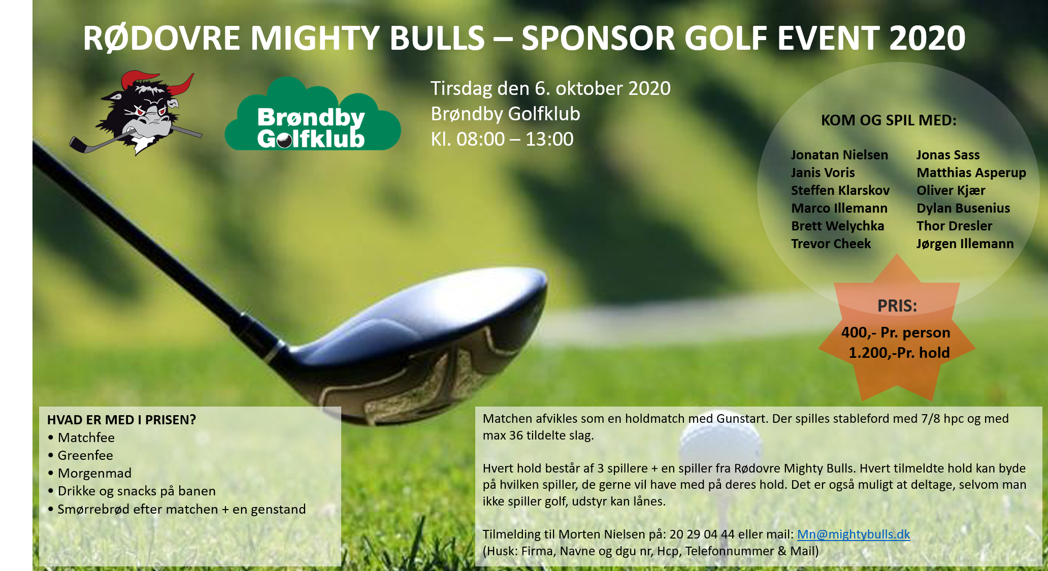 Tirsdag d. 6. oktober inviterer Rødovre Mighty Bulls til Sponsor Golf Event, hvor det bliver muligt at spille mod spillerne og andre sponsorer.